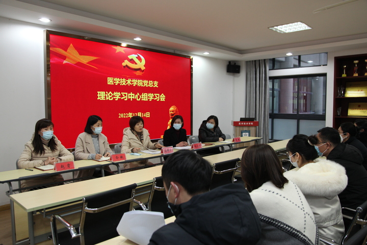 12月14日下午,医学技术学院党总支在A308会议室召开理论学习中心组学习会议,深入学习领会习近平总书记关于推进马克思主义中国化的重要论述。全体党总支委员参加会议,办公室、学工办和团总支负责人列席会议,副校长高璀乡到场巡学旁听。会议由医学技术学院党总支书记殷卫红主持。