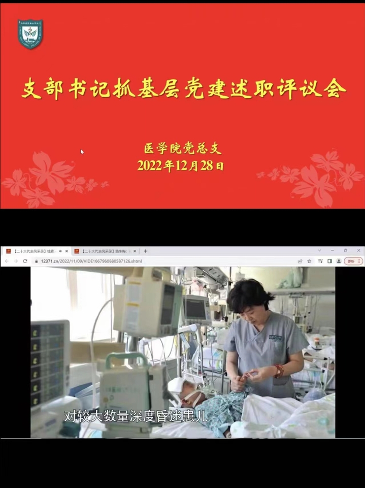 会上,全体党员观看了二十大代表路生梅、钱素云事迹故事,学习代表们爱岗敬业、敢于担当、开拓创新、无私奉献的优秀品质和精神风范。随后,医学院第一党支部书记郝玲和基础医学部党支部书记张虎分别就二十大精神学习、基层党组织建设、党建重点任务推进及支部书记履职情况等方面进行了述职。