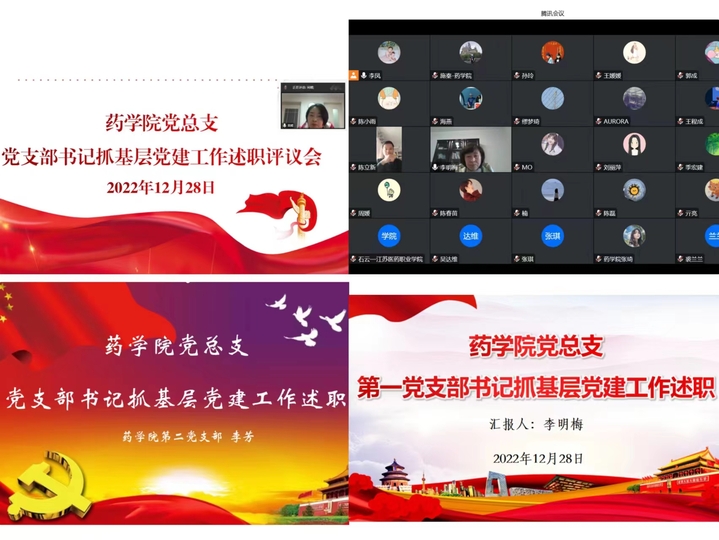为不断加强基层党组织建设,切实抓好党建工作责任落实,12月28日下午,药学院党总支召开2022年度党支部书记抓基层党建工作述职评议线上汇报会。药学院党总支全体党员参加了本次会议。会议由学院党总支书记陈立新主持,校党委组织部副部长周媛列席会议并作点评。