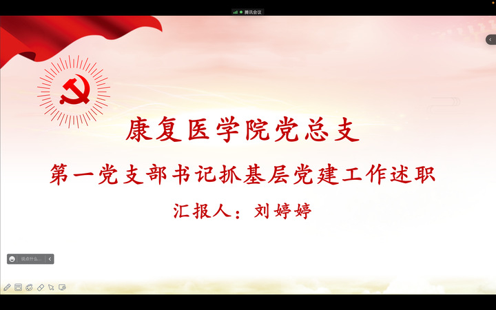 会上,康复医学院第一党支部书记刘婷婷就习近平新时代中国特色社会主义思想和党的二十大精神学习、样板支部建设推进及支部书记履职情况等方面进行了述职。