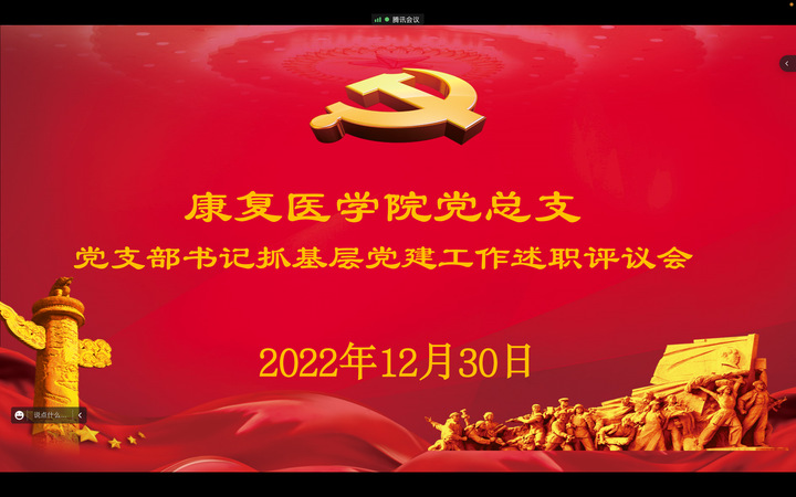 根据校党委组织部《关于做好2022年度党组织书记抓基层党建述职评议考核工作的通知》精神,12月30日下午,康复医学党总支开展党支部书记抓基层党建述职评议会。会议由康复医学院党总支书记赵亮主持,总支全体党员参加了会议。