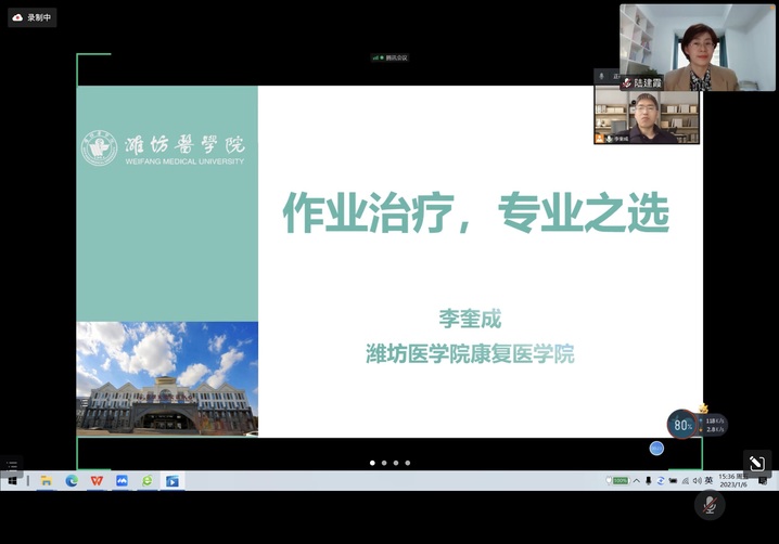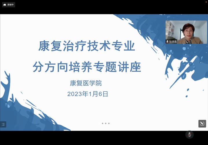 为深化康复治疗技术专业现代学徒制人才培养模式改革,康复医学院根据中高职“3+3”学生特点,拟开设物理治疗、作业治疗、儿童康复3个专业方向班。为了提升学生对拟开设专业方向班的认知度,1月6日下午,康复医学院邀请行业专家开展分专业方向专题线上讲座活动。参加人员包括康复医学院院长陆建霞,南京医科大学康复医学院钱开林教授、潍坊医学院康复医学院李奎成教授、黑龙江省社会康复医院副院长李海华教授、宿迁市中西医结合医院王耀主任,2022级康复治疗技术3+3全体学生、专业负责人、教研室主任和班主任。线上讲座由陆建霞院长主持。