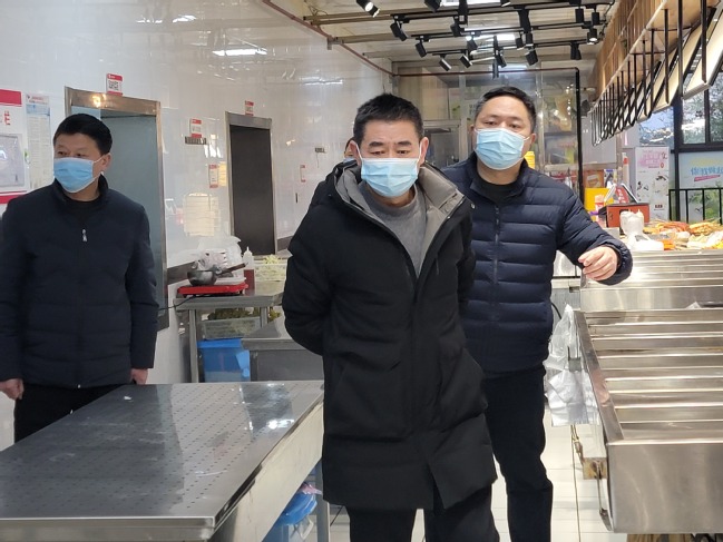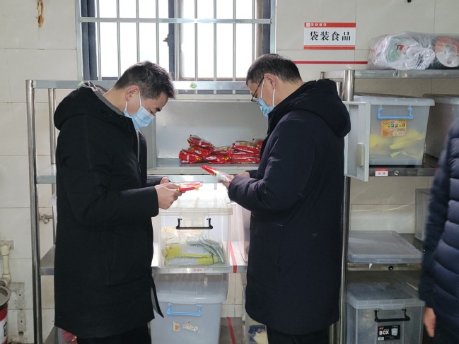 2月13日下午,盐城市、区两级市场监督管理局督查组来校督查开学食品安全工作,盐城市市场监督管理局食品经营处处长张慧华、盐南分局副局长徐华斌带队督查,学校后勤管理处处长王毅兵以及相关负责人陪同检查。