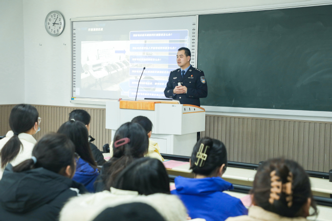 为进一步增强学生防骗意识和反诈能力,有效预防和遏制校园诈骗案件发生,2月16日下午,校保卫处于西校区k201举办防范网络电信诈骗专题讲座,特邀城南新都派出所王子建警官为学生普及反诈知识。讲座由保卫处孙璟老师主持。