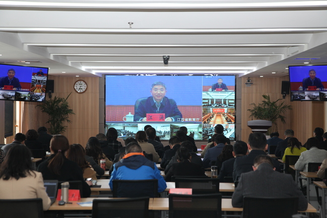3月15日,江苏省教育厅召开全省教育系统学习贯彻2023年全国两会精神报告会,传达学习全国两会精神的部署要求。会议邀请全国人大代表、中国工程院院士、河海大学党委书记唐洪武,全国政协委员、南京师范大学党委书记王成斌,全国人大代表、淮安市新安小学校长张大冬传达习近平总书记参加十四届全国人大一次会议江苏代表团审议时的重要讲话精神和全国两会精神。我校设立分会场组织收看视频会议,全体在盐校领导、中层干部、党支部书记、思想政治理论课教师与会。