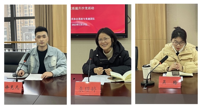 交流促发展,齐心共进步。领学结束后,中医药学院辅导员袁璟婷、公共卫生与管理学院辅导员吴晗、康复医学院辅导员高媛媛分别作为老中青辅导员代表结合本职工作分享了学习体会。袁璟婷老师表示2023年“两会”是全面贯彻党的二十大精神开局之年的历史性盛会,作为一名高校辅导员,要牢记为党育人、为国育才使命,用心用情用力做好学生的思想政治工作。吴晗老师表示将从“两会”精神中汲取奋斗力量,做青年学生的引路人和知心朋友,引导学生用自己所学知识服务社会,为培养德智体美劳全面发展的社会主义建设者和接班人不懈奋斗。高媛媛老师表示作为一名新入职辅导员,深深感受到肩上承载的责任,将以时不我待的紧迫感和只争朝夕的精气神,紧扣立德树人根本任务,贴近学生“急难愁盼”问题,把工作做细做实。
