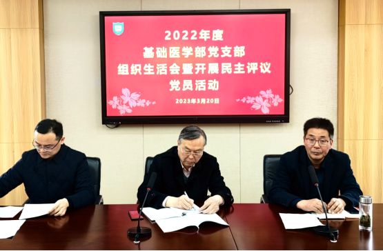 根据省委组织部《转发<中共中央组织部关于召开2022年度基层党组织组织生活会和开展民主评议党员的通知>的通知》(苏组通〔2022〕69号)精神,3月20日下午,基础医学部党支部在学术会议中心第五会议室召开支部组织生活会和民主评议党员活动,党委委员、副院长侍杏华以普通党员身份参加会议。会议由支部书记张虎主持。