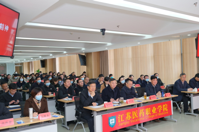 蒋巍从大会概况、习近平总书记在大会期间的重要讲话精神、政府工作报告主要内容、新一届国家机构领导人和组成人员情况、盐城代表与委员履职情况等方面详细传达了全国两会精神。蒋巍指出,十四届全国人大一次会议选举产生了新一届国家领导人,习近平同志全票当选中华人民共和国主席、中华人民共和国中央军事委员会主席,充分反映了全党全军全国各族人民共同心愿,充分体现了党的意志、人民意志、国家意志的高度统一,充分展现了我们党和国家的凝聚力、向心力。蒋巍强调,全校师生要切实把思想和行动统一到全国两会精神上来,深刻领悟习近平总书记重要讲话精神,聚焦实现高水平科技自立自强,推动国家高质量发展,助力中国式现代化建设,围绕盐城市委、市政府各项战略部署,与时俱进加快特色鲜明、国内一流高职院校的建设步伐,奋力谱写新时代江苏医药职业学院建设崭新篇章。