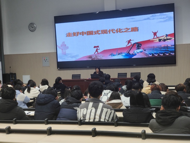 “从现在起,我们党的中心任务就是要全面建成社会主义现代化强国、实现第二个百年奋斗目标,以中国式现代化全面推进中华民族伟大复兴。”课堂上,校领导们围绕“走好中国式现代化之路”主题,发挥自身理论知识、实践经验等方面的优势,用鲜活生动的事例、通俗易懂的语言、简明顺畅的逻辑,从“接续奋斗,追求千年梦想”“立足国情,开辟全新道路”“凝心聚力,推进复兴伟业”三方面,为学生总结阐释了中国式现代化的发展历程、个性特征、基本原则和实现路径,教育引导苏医学子要坚定“四个自信”,胸怀“国之大者”,自觉担负时代使命,为祖国贡献青春力量。