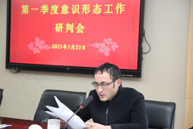 党委委员、宣传部部长胡勇对各党总支、直属党支部第一季度意识形态研判工作进行了布置