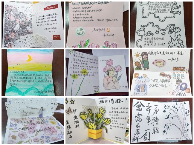 纸短诉情长,祝福暖人心。3月22日-3月24日,护理学院分别在国际会议中心、A111、C214开展“纸短情长,拥抱梦想”创意贺卡送师生活动。活动前,护理学院大一、大二在校同学亲手制作贺卡,为备战护士执业资格考试的学长学姐送上真挚的祝福,向辅导护士执业资格考试的老师们表达诚挚的谢意。活动中,大三学子在收到精美的贺卡后,第一时间阅读学弟学妹们亲手写下的一句句祝福,致谢的掌声在教室里此起彼伏,辅导老师们手持卡片也体会到教书育人的责任感和为人师者的幸福感。活动结束后,大三学子纷纷表示这次活动让他们在备考学习中更有动力,对辅导老师们的辛勤付出表示感谢!