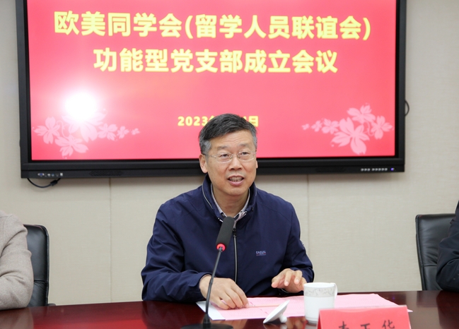 4月4日上午,我校在学术会议中心第五会议室召开欧美同学会(留学人员联谊会)功能型党支部成立会议,党委副书记李玉华出席会议并讲话,统战部组织部负责人及欧美同学会党员参加会议,党委委员、统战部组织部部长陈洪魁主持会议。