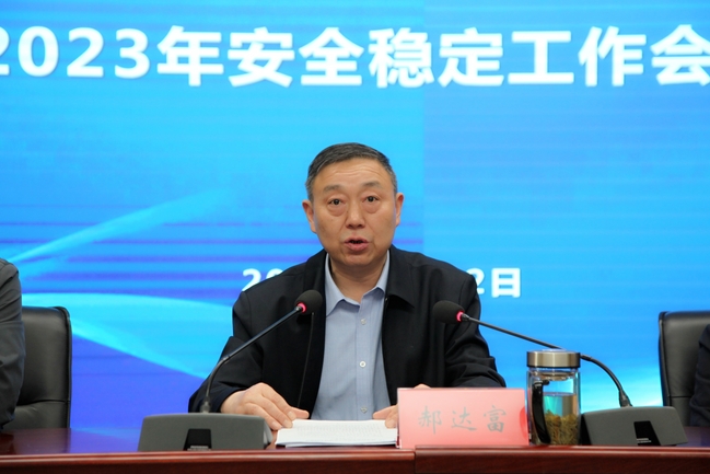 最后,党委书记郝达富讲话。郝书记充分肯定了学校2022年安全工作。他指出,在全校师生的共同努力下,学校安全稳定形势总体平稳,有力保障了各项事业快速发展。特别是在疫情防控的大战大考中,广大党员干部上下同心、执行有力,充分展现了无私奉献、众志成城、团结协作的组织力量和精神风貌。郝书记对抓好今后一段时期的安全稳定工作提出了三点要求:一是要认识再深化,全力维护安全稳定大局;二是要目标再聚焦,抓实抓牢安全稳定工作;三是要责任再压实,坚决铸牢安全稳定防线。郝书记强调,安全稳定重于泰山,希望全校党员干部和广大师生以党的二十大精神为指引,深入贯彻落实党中央、省委省政府、省教育厅关于校园安全稳定工作的各项决策部署,坚决扛起维护安全政治责任,坚决守住安全稳定底线红线,切实做到源头预防到位、风险隐患排查到位、矛盾化解稳控到位、应急处置到位,全力做好校园安全稳定各项工作,奋力谱写新时代学校事业改革发展新篇章!