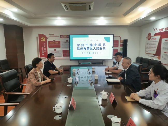 陆院长一行首先到访常州市德安医院进行访企拓岗考察交流,常州市德安医院副院长卢同波对陆院长一行的到访表示热烈欢迎,在卢院长的陪同下,康复医学院一行先后考察参观了康复治疗大厅、儿童康复区、言语治疗区。参观结束后,双方在医院会议室举行了访企拓岗专题座谈。卢同波对我校人才培养质量给予充分肯定,并详细介绍了医院的发展历程及康复特色优势,热切期望在学科科研、人才培养和实习就业等方面展开进一步的合作。