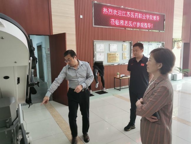 4月19日中午,陆院长一行来到位于西太湖医疗产业园的常州雅思医疗器械有限公司。在公司总经理黄澎的陪同下参观了康复智能康复设备展示区、康复设备研发中心、康复医疗器械制作车间。座谈会上,陆院长介绍了我校康复医学院的发展情况和毕业生规模,并表示将以此次专项行动为契机,深入了解雅思医疗的人才需求,以就业为切入点,进一步校企合作交流,努力为企业发展提供更多人才支持和智力支撑。黄澎总经理介绍了公司的发展情况和人才工作进展,就急需紧缺人才进行了交流,并表示欢迎我校毕业生来雅思医疗就业。