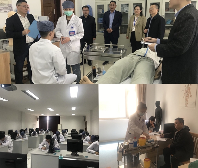 本次实习质量考核分为中医执业助理医师多站式技能考核和实习文档抽查两部分,中医学专业81位实习生接受考核。在理论答题考核环节,同学们奋笔疾书、认真作答;技能考核模拟中医执业助理医师环节,中医技能考核站,同学们表示既紧张又兴奋,对穴位识别准确,应用得当;体格检查和西医技能操作考站,部分考生很紧张,查体动作略显僵硬,经过专家的引导,在体格检查时能团队合作完成检查;病人手术区消毒注意到无菌观念养成,同时体现人文关怀,整个过程能沉着应对。整个技能考核现场进站、换站,秩序井然;专家监考公平公正,严格执行评判标准。文档检查组专家对我校的实习生手册、大病历书写、入科培训、出科考核、师承制档案等材料进行仔细检查,并询问相关细节,在场科教处老师均做了相应解答。
