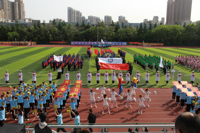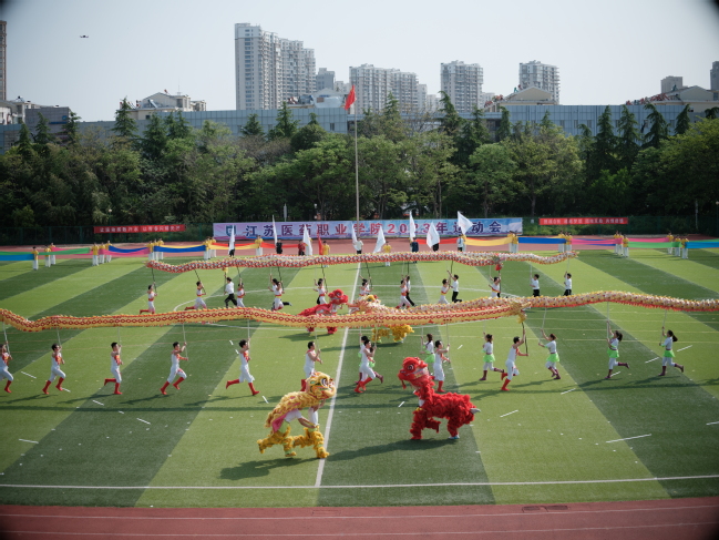 首先由陈国忠院长为开幕式表演的祥龙点睛,本次开幕式特邀全国冠军、省运会冠军得主扬州工业职业技术学院舞龙队为我校全体师生献上《中国龙》舞龙表演,值此盛会,以图风调雨顺、国泰民安、弘扬民族精神。随后的团体操表演《美丽中国》是由各学院学生组成,苏医学子踏着奋进的旋律,向着操场中央迈进,他们气宇轩昂,像战士一样,迎着冲锋的号角,激励全校师生奋勇拼搏!