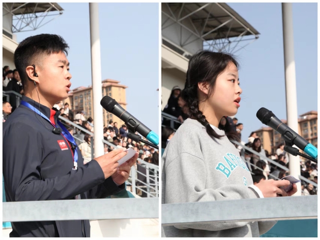 体育运动委员会主任、副院长王辉宣布我校2023年校运动会开幕。
