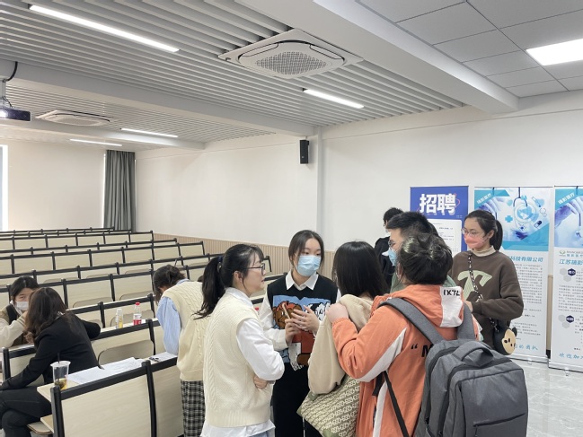 现场答疑解惑。本次专场招聘会扬州友好医院、江苏英科新创等用人单位给予了极大支持,宣讲结束后,同学们对有意向的企业投去了简历并进一步与用人单位了解情况,免去了毕业生求职路途上的奔波。招聘会结束后,线下达成就业意向25人,给未就业的毕业生提供了足不出户解决就业的机会。