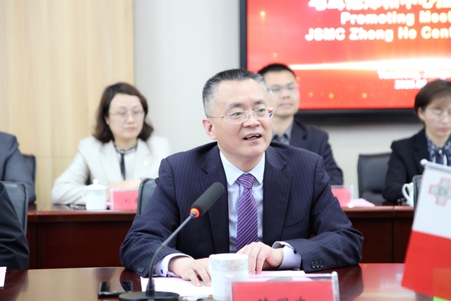 会上,党委书记郝达富代表学校致欢迎词,对布苏蒂尔博士的到访表示热烈欢迎,对蒋巍副市长的现场指导表示衷心地感谢。郝书记指出,本次推进会是学校马耳他“郑和中心”项目所取得的又一重大进展,学校将以此次会议为契机,积极筹备中心的建设,努力将中心打造成一个开放融合的国际合作交流平台,以新发展格局激发新优势,继续探索职业教育、职业文化与世界分享的模式,为马耳他职业教育、卫生事业发展贡献苏医方案。