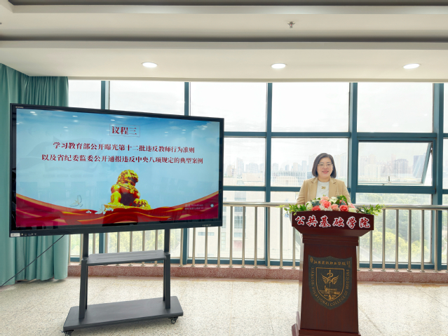 为深入贯彻落实全面从严治党要求,进一步推动党员和教职员工增强廉洁自律意识,全力营造风清气正、干事创业的良好政治生态,5月10日下午,公共基础学院直属党支部在西园得英楼七楼会议室召开警示教育专题会议,以“严守纪律规矩 筑牢思想根基〞为主题,启动部署2023年“510”警示教育系列活动,学院全体教师参加会议。会议由公共基础学院直属党支部书记、院长殷卫红主持。