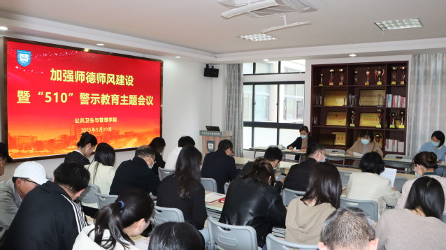 5月10日,公共卫生与管理学院在A308会议室召开“510”党风廉政警示教育专题学习会议。学院响应教育部号召,围绕贯彻落实师德师风是评价教师队伍素质的第一标准,研究新形势下加强师德师风建设的思路举措,推动师德师风建设进一步形成严的基调、氛围和态势,全体教师参加会议,公共卫生与管理学院党总支书记顾娟主持会议。