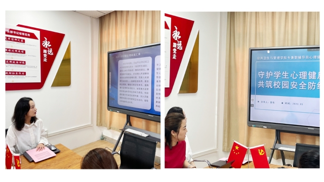 为进一步落实推进《江苏医药职业学院“5·25 大学生心理健康月”活动方案》,加强我院辅导员专业化、职业化培养,提升我院校内外专兼职辅导员学生心理工作能力,5月14日,公共卫生与管理学院在A308会议室举办了以“云端相聚齐助力 护航心理促成长”为主题的心理案例研讨会。本次会议采取线上+线下相结合的方式进行,校外教学点班主任通过腾讯会议参会,校内全体专兼职辅导员齐聚308会议室开展研讨学习,学院党总支副书记赵霄主持会议。