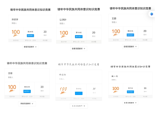 铸牢中华民族共同体意识知识竞赛答题情况