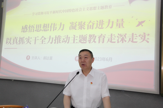 根据学校主题教育工作安排,6月7日下午,党委书记郝达富以“感悟思想伟力 凝聚奋进力量 以真抓实干推动主题教育总要求落地生根”为主题作专题党课。省委主题教育第二十四巡回指导组副组长、南京工业职业技术大学党委副书记马成荣到会指导。
