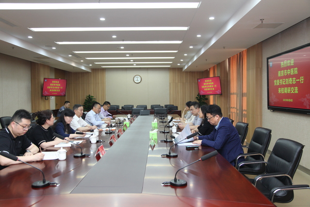 6月6日下午,南京市中医院党委书记刘奇志,党委副书记、副院长吴素玲,社会服务处及相关科室负责人一行5人来校访问交流。我校党委书记郝达富、院长陈国忠在学术会议中心第五会议室与来宾座谈,党办院办、医教协同办公室、医学院、中医药学院等部门负责同志参加了交流。会议由党委书记郝达富主持。