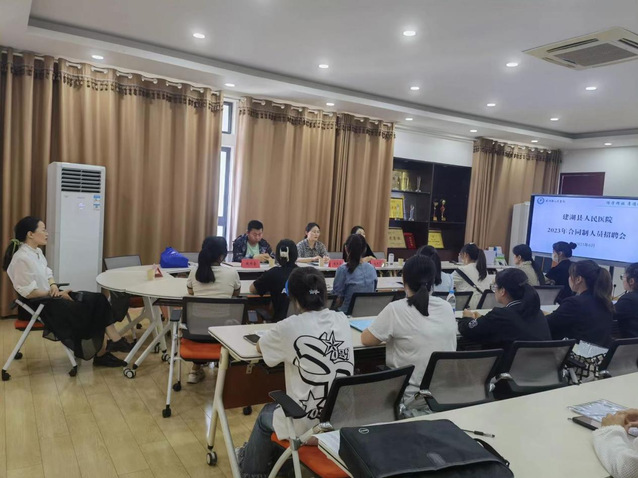 招聘会现场,建湖县人民医院负责人通过播放宣传片、PPT展示等形式向同学们详细介绍了医院的发展历史、工作环境和待遇、发展平台等情况,重点介绍了护理人才招聘需求以及职业发展方向、就职优势等,并介绍了招聘会的具体流程和后续安排。随后,在招聘会现场进行面试,同学们积极准备,从容面对,现场签订就业意向书21份。
