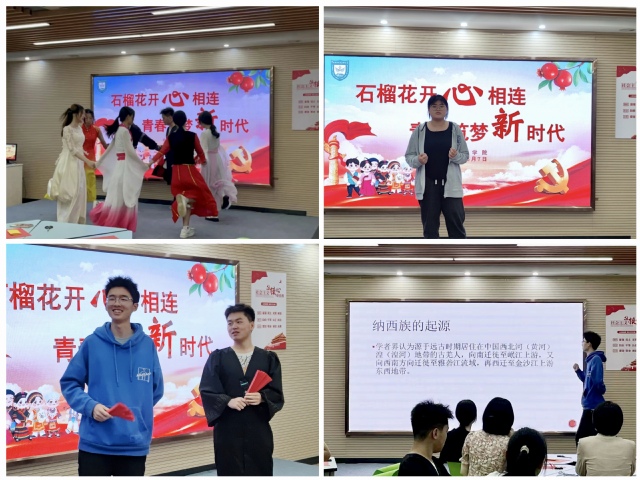 活动由少数民族同学带来的民族舞《乌蒙欢歌》拉开序幕,让在场的师生领略了民族风情;纳西族的同学从服饰、饮食、节日、语言等多个方面展示了独具特色的纳西族;傣族的罗鑫同学与纳西族的和田辉同学带来了相声表演《身边的客气话》;回族的李欣冉同学演唱《倔强》,同学们纷纷加入合唱,将现场气氛推向高潮。