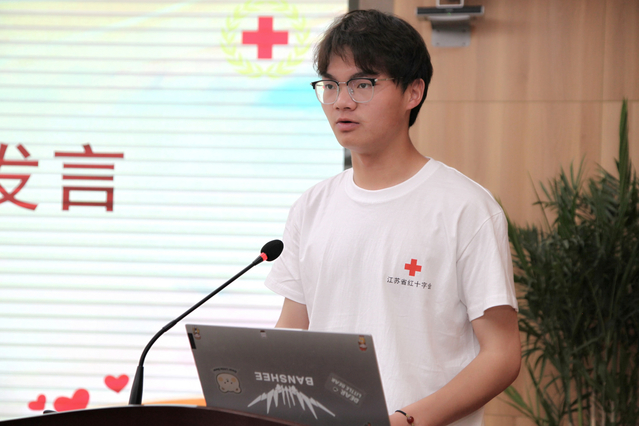 吴晗老师对“‘医’心为民博爱同行 ‘药’暖乡村汇聚真情”志愿服务项目从整体规划、活动内容、开展形式三个方面进行了介绍。志愿者代表孙智鹏在发言中表示,作为青年学子要结合专业特长开展志愿服务,自觉地将青春梦融入中国梦,要用实际行动践行“永远跟党走”的誓言。