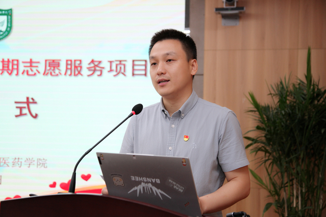 6月30日上午,中医药学院在学术会议中心第三会议室举办2023年“博爱青春”暑期志愿服务项目启动仪式。校党委委员、副院长王辉出席活动并讲话。校团委书记刘旸,中医药学院院长田友清、副院长黄诚、团总支书记吴晗及全体志愿者参加活动。活动由中医药学院党总支副书记周媛主持。