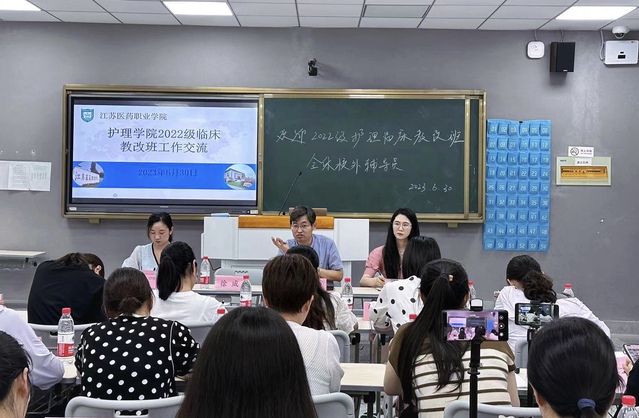 会上,首先由2022级年级辅导员沈珵分享了学生日常管理的要求,就《护理学院临床教改班班级管理以及班主任考核细则》从制度层面对临床医院学生管理与考核工作进行了详细的解读和说明。接着,东台市人民医院辅导员胡霞介绍了医院对于教改班的管理所构建的完备的学习激励体系和监督机制,定期开展丰富多彩的学生活动,医院自上而下重视学生的学习管理与素质教育,将爱生理念贯穿到学生管理工作的始终;盐城市第一人民医院辅导员周绚丽老师分别从课程设置和临床见习、教学质量监控、教改纪律与沟通交流进行了详细的介绍,多种举措体现了医院对学生管理工作的重视。每位参会人员都感受到各家临床医院老师在学生管理过程中对学生的用心良苦、体贴入微,在扎扎实实地、一步一步地培养学生成为一名有理想、有职业素养的优秀护士。