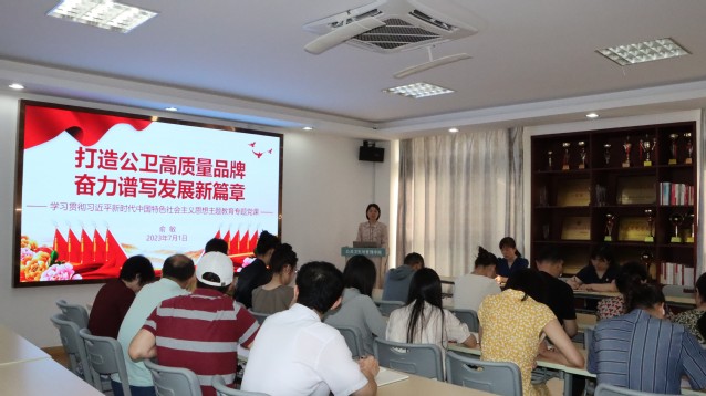 为深入开展学习贯彻习近平新时代中国特色社会主义思想主题教育,加快中国特色高水平高职院校建设步伐、推动学校事业高质量发展,公共卫生与管理学院院长俞敏于7月1日下午在A308会议室为全体党员老师讲授《打造公卫高质量品牌,奋力谱写发展新篇章》专题党课。