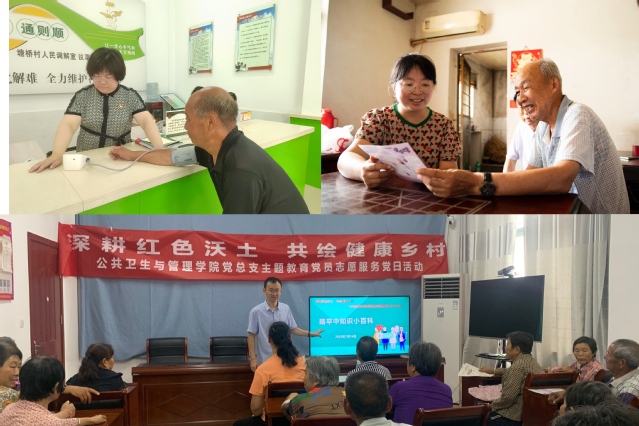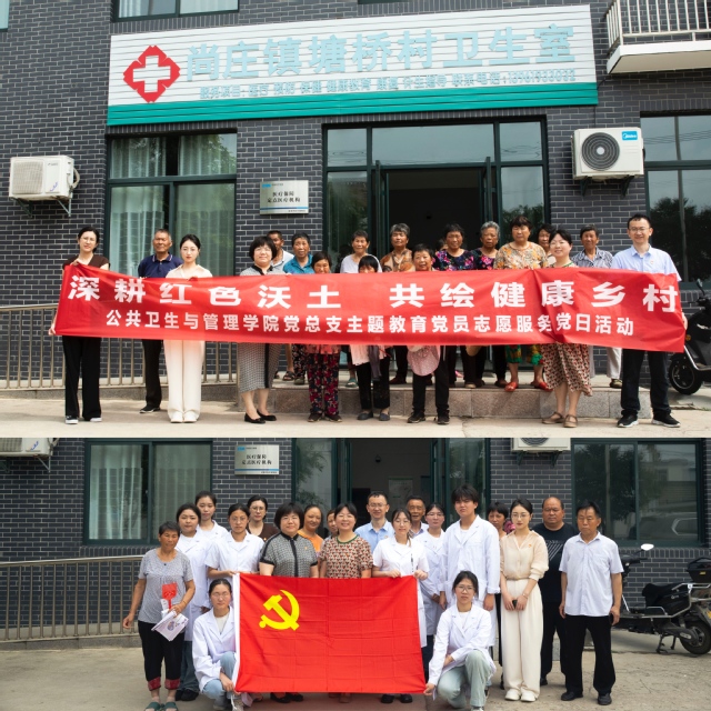 为推动学习贯彻习近平新时代中国特色社会主义思想主题教育走深走实,发挥党员先锋模范作用,7月14日,公共卫生与管理学院党总支携手盐城市盐都区疾病预防控制中心、尚庄镇卫生服务中心开展“深耕红色沃土,共绘健康乡村”老年居民健康教育志愿服务主题党日活动。公共卫生与管理学院党员老师以及部分预防医学专业学生共同参加了此次活动。
