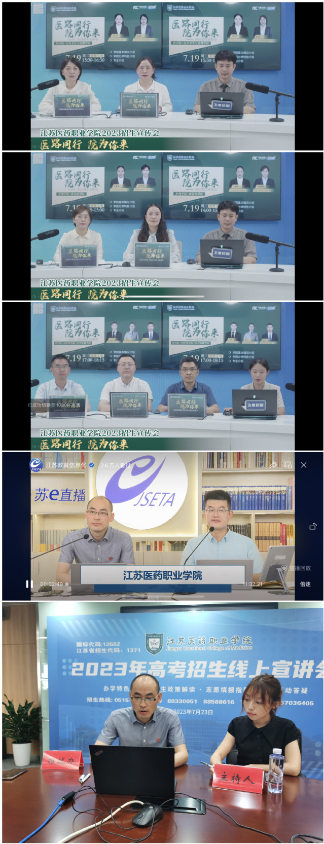 为做好我校2023年招生宣传工作,搭建与考生及家长与学校沟通的平台,展示学校综合实力和办学成果,吸引更多优质生源报考我校,7月19日至25日期间,学校招办开展了“医路同行 院为你来”“招办主任面对面”“江苏省普通高考招生宣传系列直播”等直播活动,招办及七个招生学院负责人走进直播间,担任直播嘉宾,与广大考生及考生家长进行了9个场次的“云上”交流互动。