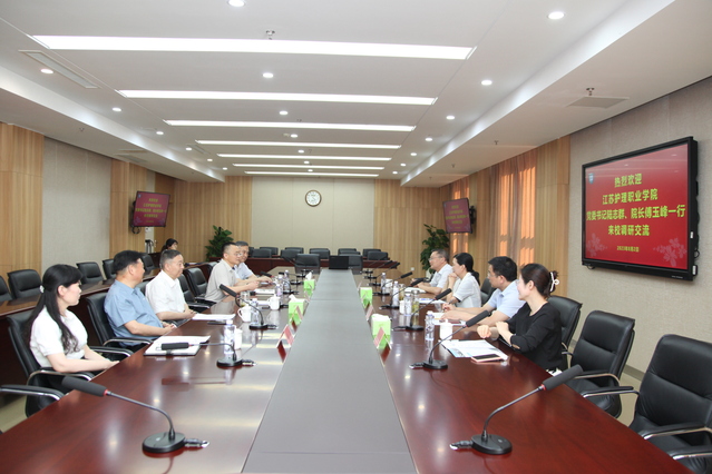 8月2日下午,江苏护理职业学院党委书记陆志群、院长傅玉峰一行来我校访问交流。我校党委书记郝达富,党委副书记、院长陈国忠,副院长王辉、侍杏华出席会议。会议由党委书记郝达富主持。