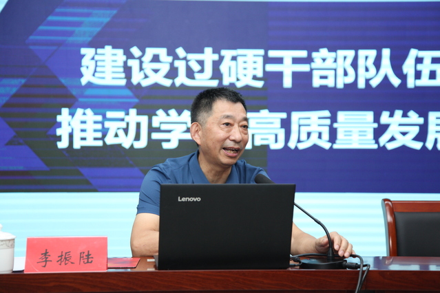 李振陆教授作了题为《建设过硬干部队伍推动学校高质量发展》的专题报告,重点解读了《教育部办公厅关于加快推进现代职业教育体系建设改革重点任务的通知》精神,对“十四五”时期江苏省职业教育的主要任务进行了深入分析,同时从“领导应具备的素质和能力”、“干部队伍建设的举措”、“努力成为一名合格干部”三方面对加强干部队伍建设提出了一系列建设性意见和建议。李教授结合自身经历所作的报告分享,全体与会人员受益匪浅。