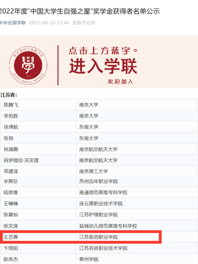 近日,由共青团中央、全国学联指导,中国青年报社、新东方教育科技集团、中国青年创业就业基金会联合举办的2022年度“中国大学生自强之星”奖学金评定名单揭晓。我校2020级护理专业王艺蓉同学荣获2022年度“中国大学生自强之星”奖学金。