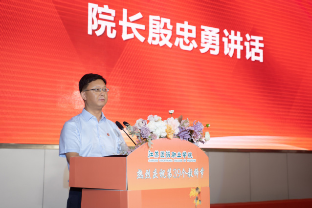 院长殷忠勇在大会上致辞,代表学校党政向全校广大教师、教育工作者们致以节日的问候和美好的祝愿,向受到表彰的先进集体与个人表示热烈的祝贺。他指出,今年教师节的主题是:“躬耕教坛,强国有我”。强国必先强教,强教必先强师。殷院长勉励全体教师不负“强国有我”的时代使命,争做新时代立德修身、心怀家国的有德之师,争做新时代潜心治学、求真务实的有学之师,争做新时代破浪前行、敢为人先的有为之师。