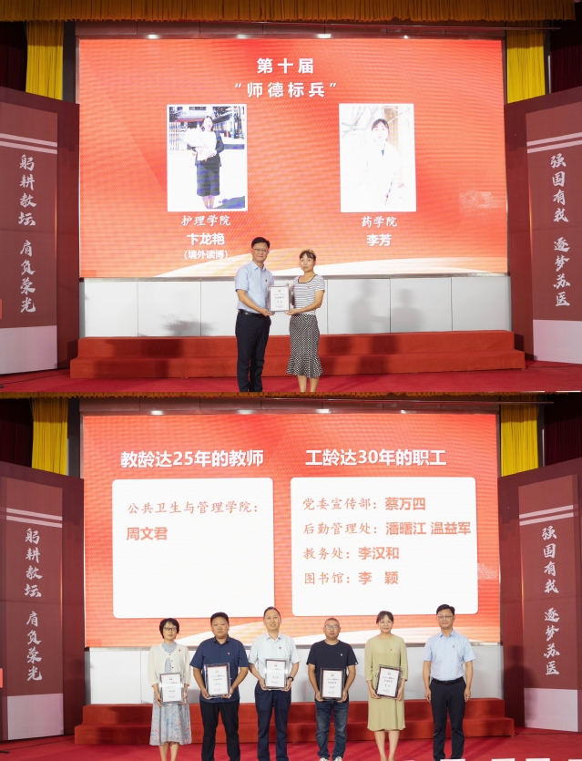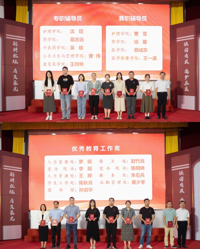 大会上,副院长吴芹宣读了《关于第39个教师节表彰先进的决定》,副院长徐成宣读了《关于给教龄达25年的教师和工龄达30年的职工颁发荣誉证书的决定》,副院长张慧通报了2022-2023学年省级以上表彰情况。校领导为获得表彰的教师和团队颁奖,并表示热烈的祝贺。