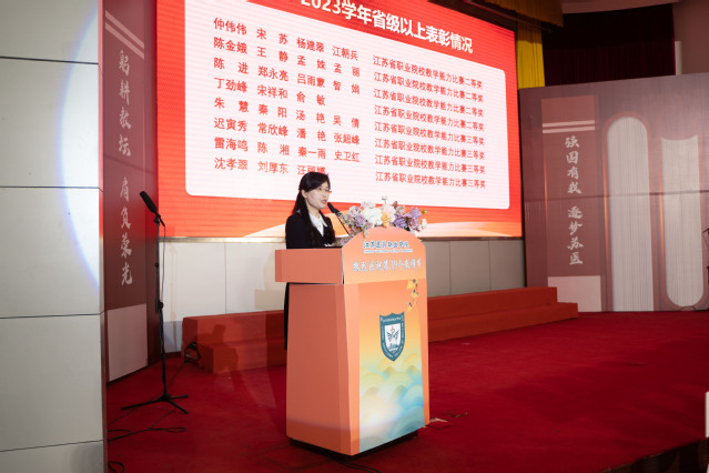 2023年江苏省教学名师李正亚教授作为优秀教师代表发言,向大家分享了自己的感悟。她认为,时代在发展,作为教师,必须与时俱进,不断充实自己,加强学习,丰富知识储备,更新教学理念,创新教学方法,研究育人艺术,提高信息技术应用水平,投身科技创新,争做学习型教师,不断提升专业素养,为学校教育教学高质量发展提供有力支撑。