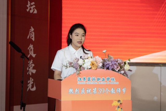 医学院临床医学专业的高萌同学代表全体学生向所有老师们致以节日的祝福和崇高的敬意。她表示,对于无数学子而言,“老师”二字重若千钧,学生的成长离不开老师们的谆谆教诲。全体同学定会求真务实、脚踏实地,发扬“业精于勤、技进乎道”的学风,认真对待每一节理论课、实训课,尊重每一位老师的劳动成果,认真学习理论知识,苦练临床技能,全面提升自己。