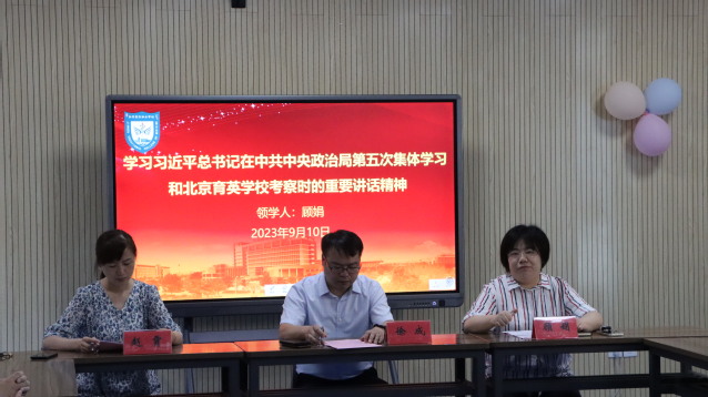会上,全体老师观看了2023年度江苏省优秀教师先进事迹展播,公共卫生与管理学院党总支书记顾娟带领大家学习了习近平总书记在中共中央政治局第五次集体学习和在北京育英学校考察时的重要讲话精神,顾书记在学习时指出:作为新时代新征程上的教育者,一定要厚植爱国主义情怀,坚守立德树人使命,始终奋进担当,争做“四有”好老师,志存高远、甘为人梯,廉洁从教、淡泊名利,成为塑造学生品格、品行、品味的“大先生”,当好学生锤炼品德、学习知识、创新思维、奉献祖国的引路人。
