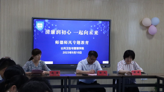 9月10日上午,公共卫生与管理学院在教学楼A313开展“喜迎党代会,培根铸魂育新人”庆祝第39个教师节活动,副院长徐成出席并讲话。活动由公共卫生与管理学院党总支副书记赵霄主持。