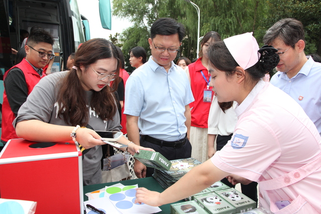 院长殷忠勇向公共卫生与管理学院新生赠送亲笔签名的明信片