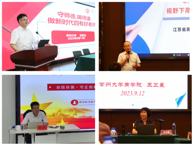 学校对此次新进教师岗前培训非常重视,培训邀请了常州大学副校长李忠玉教授、省高职师培中心聂伟进主任,党的十九大、二十大代表、南京航空航天大学徐川教授,南京邮电大学徐欣教授、常州大学王卫星教授等理论知识扎实、教学经验丰富的教学名师和行业企业专家等指导交流,开展“师德师风第一讲”“职业教育教师政策视野下高职新教师职业发展规划”“同上一堂课,启航新征程”“信息化课堂教学新模式和新形态活页式教材开发”“青年教师如何站稳讲台”等专题讲座。培训内容丰富,形式新颖,帮助新进老师了解当前教育教学改革新形势,提高课堂教育教学能力,用最短的时间站稳讲台,尽快地成为一名合格的教师。在参观瞿秋白同志纪念馆的过程中,新进老师深入了解红色文化,更加深刻地认识到作为一名职业院校教师提升思想政治素质的重要性。互动交流环节,授课专家结合社会热点和自身教学案例,有效解答了新进教师关于课堂教学与学生管理方面的困惑。结业仪式上,教师代表李玉玉结合培训学习和工作实际作了交流发言。她对为此次培训付出辛勤劳动的领导和老师表示衷心地感谢,并表示不仅在培训中学习到了师德师风、课堂教学、学生管理等相关专业知识,还明晰了新进教师的职业发展路径。