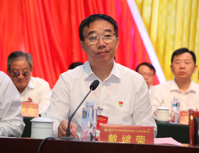 盐城师范学院党委书记戴斌荣代表兄弟院校向大会致贺词,表达对学校第二次党代会的良好祝愿。他表示,作为同在盐城的兄弟院校,两校在多年的办学实践中相互支持、共同进步,奠定了深厚的友谊。本次党代会是江苏医药职业学院发展历程中的一件大事,对于进一步统一思想、明确思路、加快发展具有十分重要的意义。他希望在未来的办学中,两校进一步加强交流、深化合作,共同推动地方高等教育高质量发展,为盐城、为江苏经济社会发展作出新的更大的贡献。